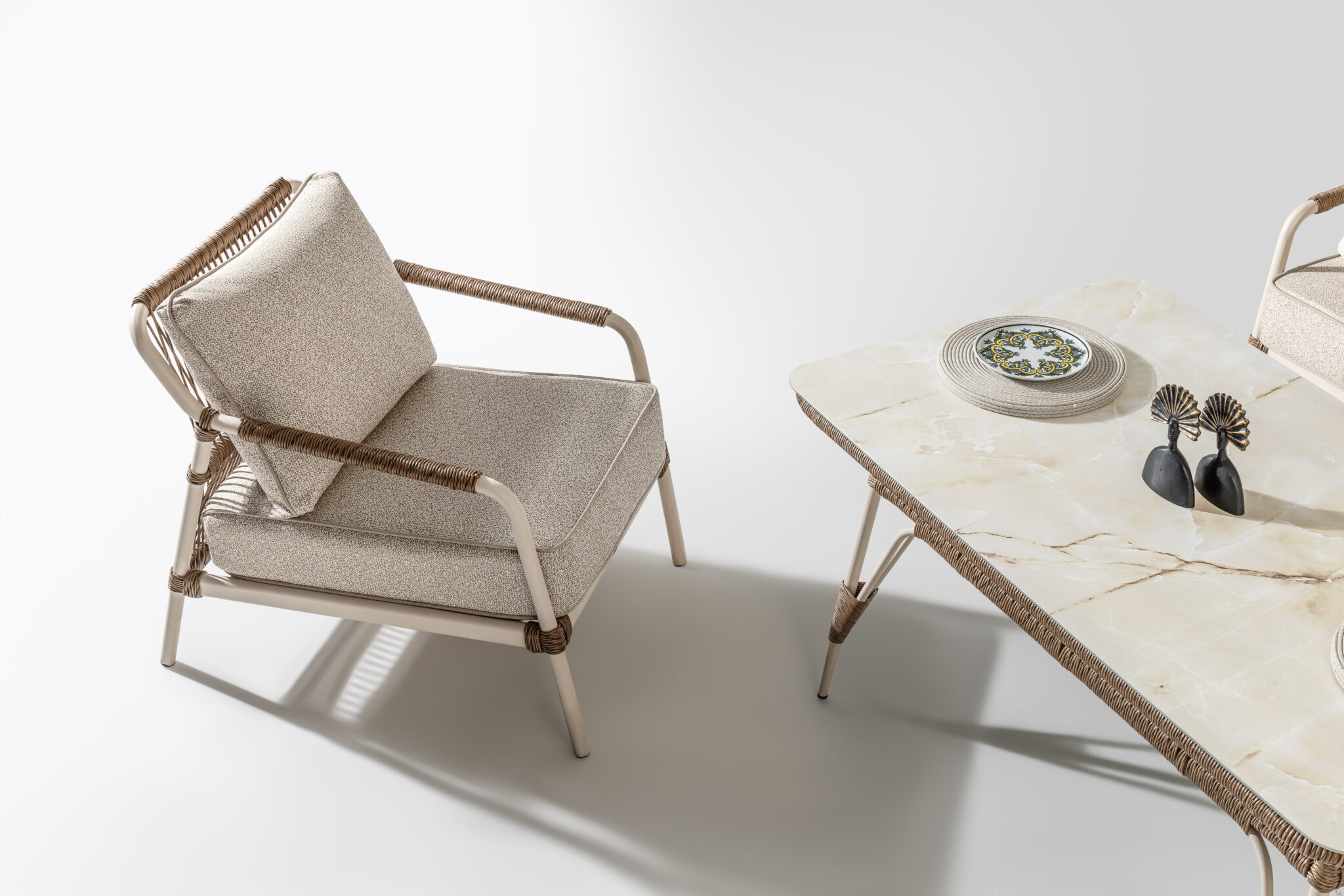 Structura setului este realizată din aluminiu rezistent, material apreciat pentru durabilitate, stabilitate și rezistență la condițiile de exterior. Datorită construcției solide și materialelor de calitate, mobilierul este potrivit pentru utilizare frecventă în spații exterioare.