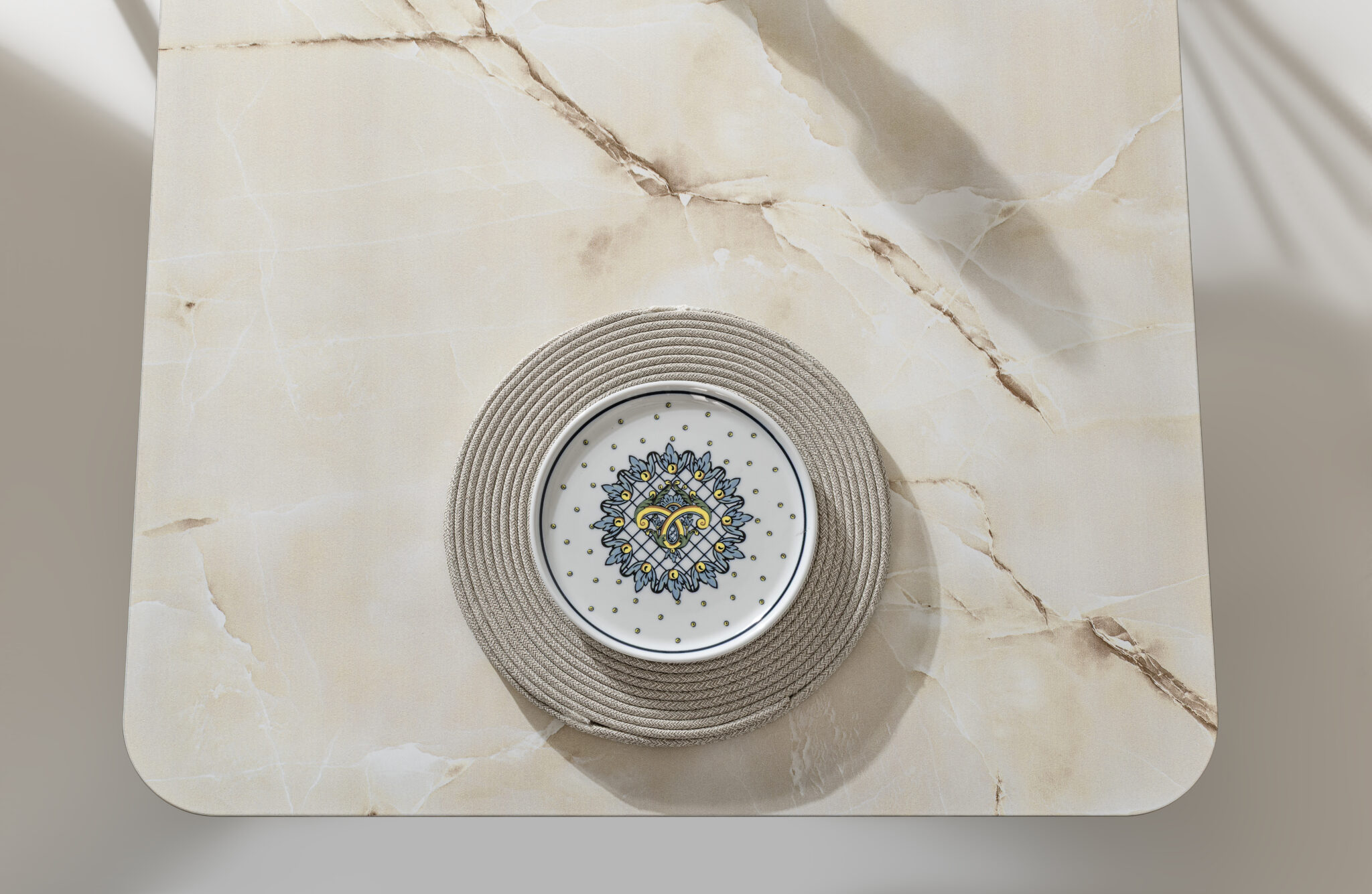 1 masă dining dreptunghiulară cu cadru metalic și blat ceramic