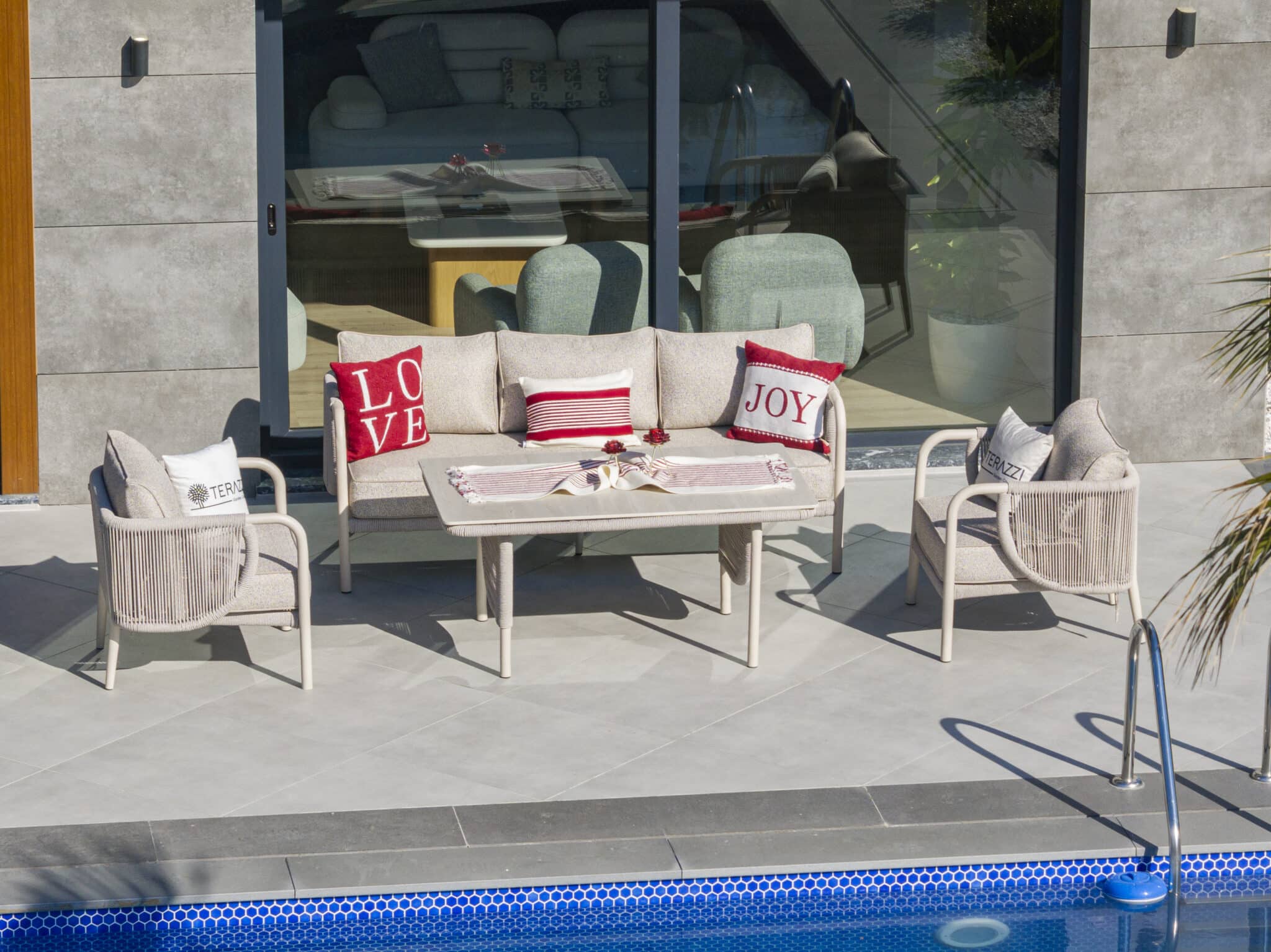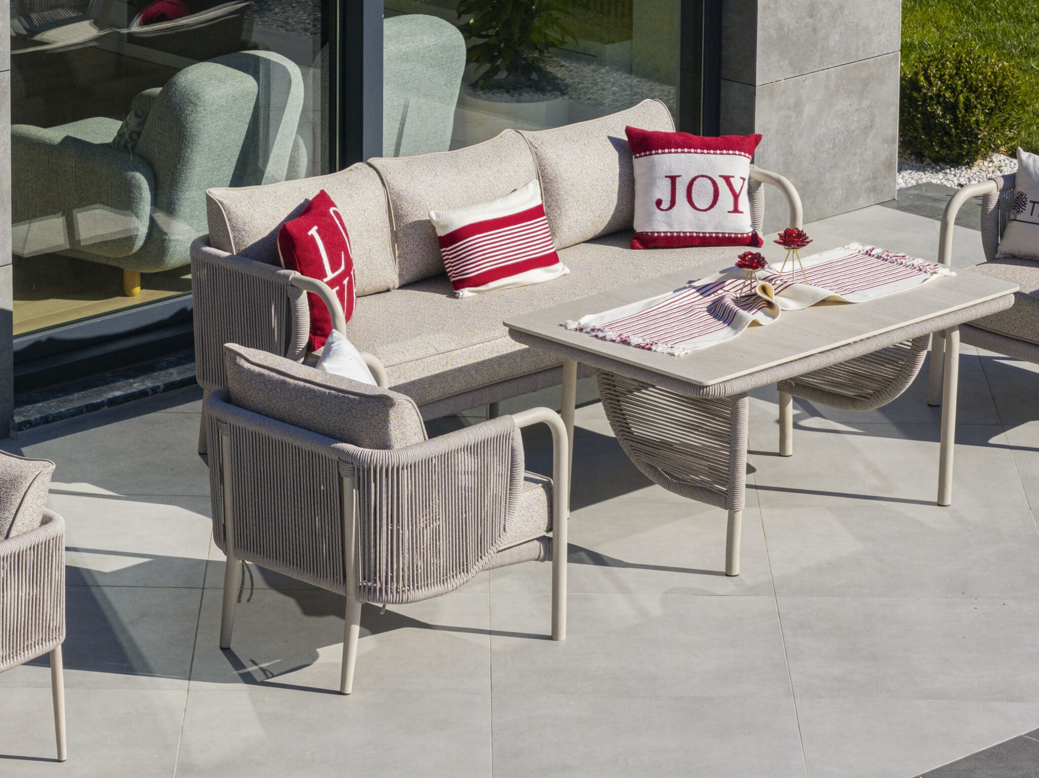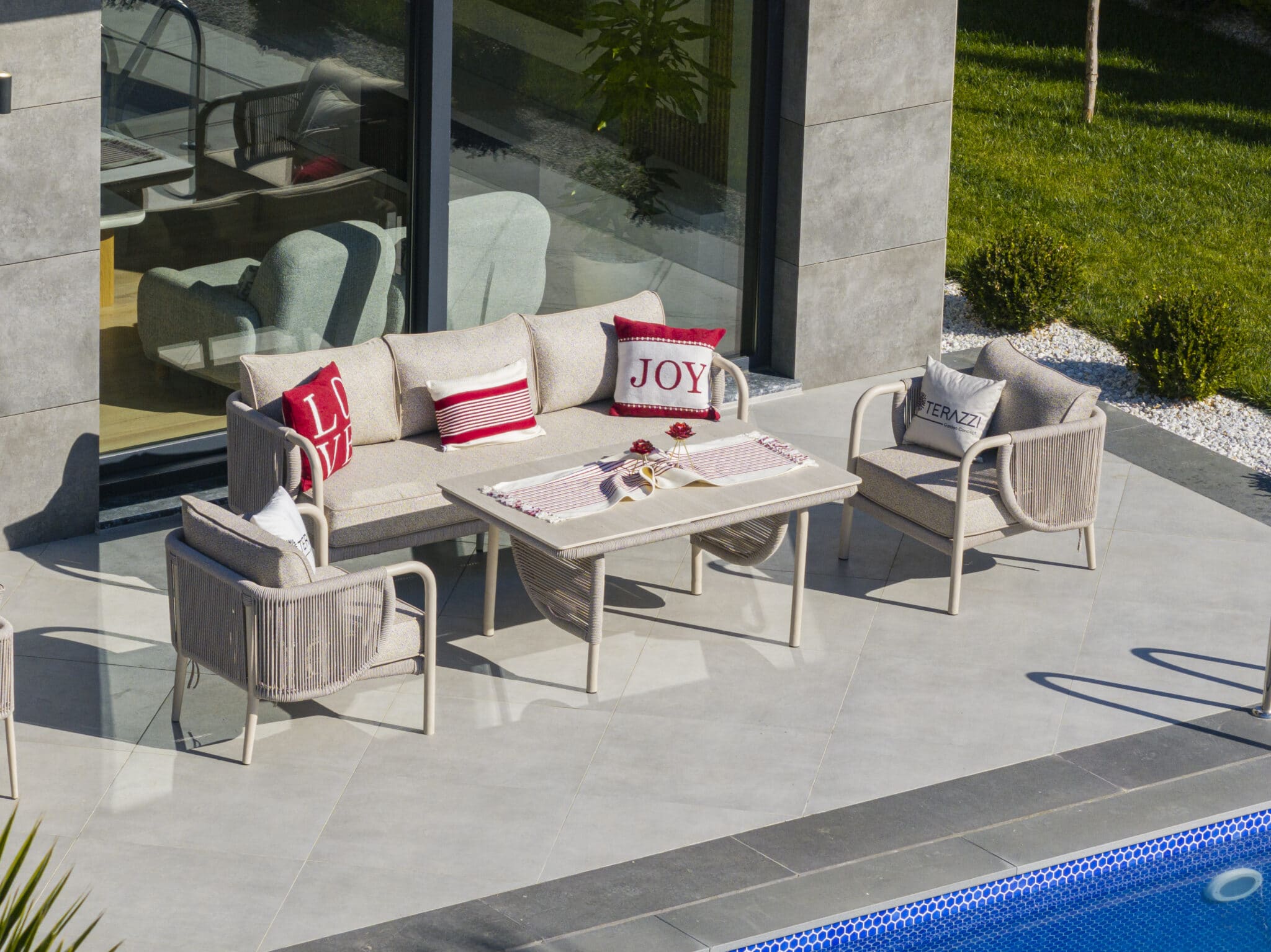 Setul este compus din o canapea, două fotolii și o masă , fiind perfect pentru momentele de relaxare și socializare în aer liber.