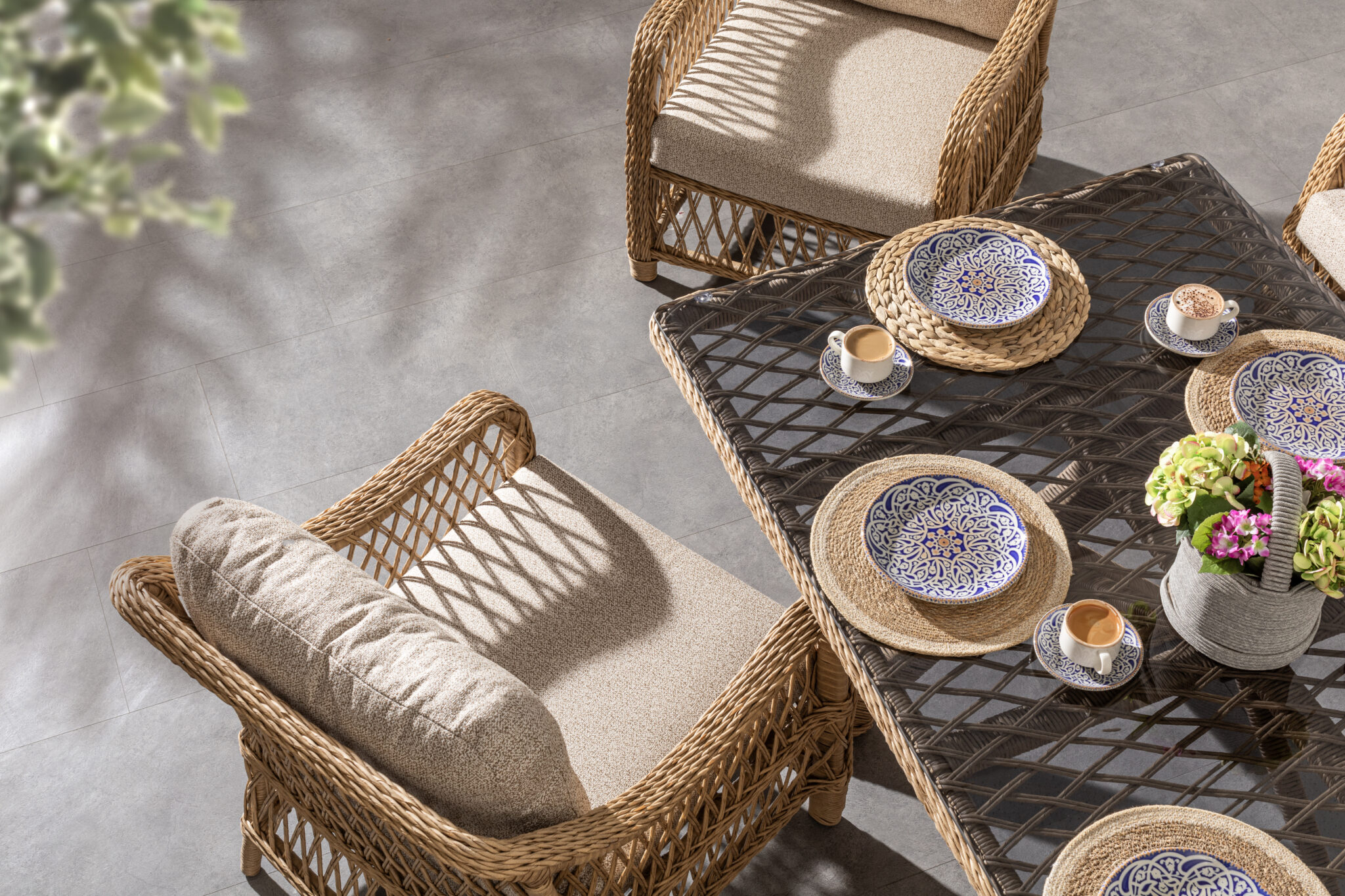 Setul este compus din o canapea, patru fotolii și o masă , fiind ideal pentru amenajarea unei zone lounge primitoare pe terasă, în grădină sau lângă zonă.