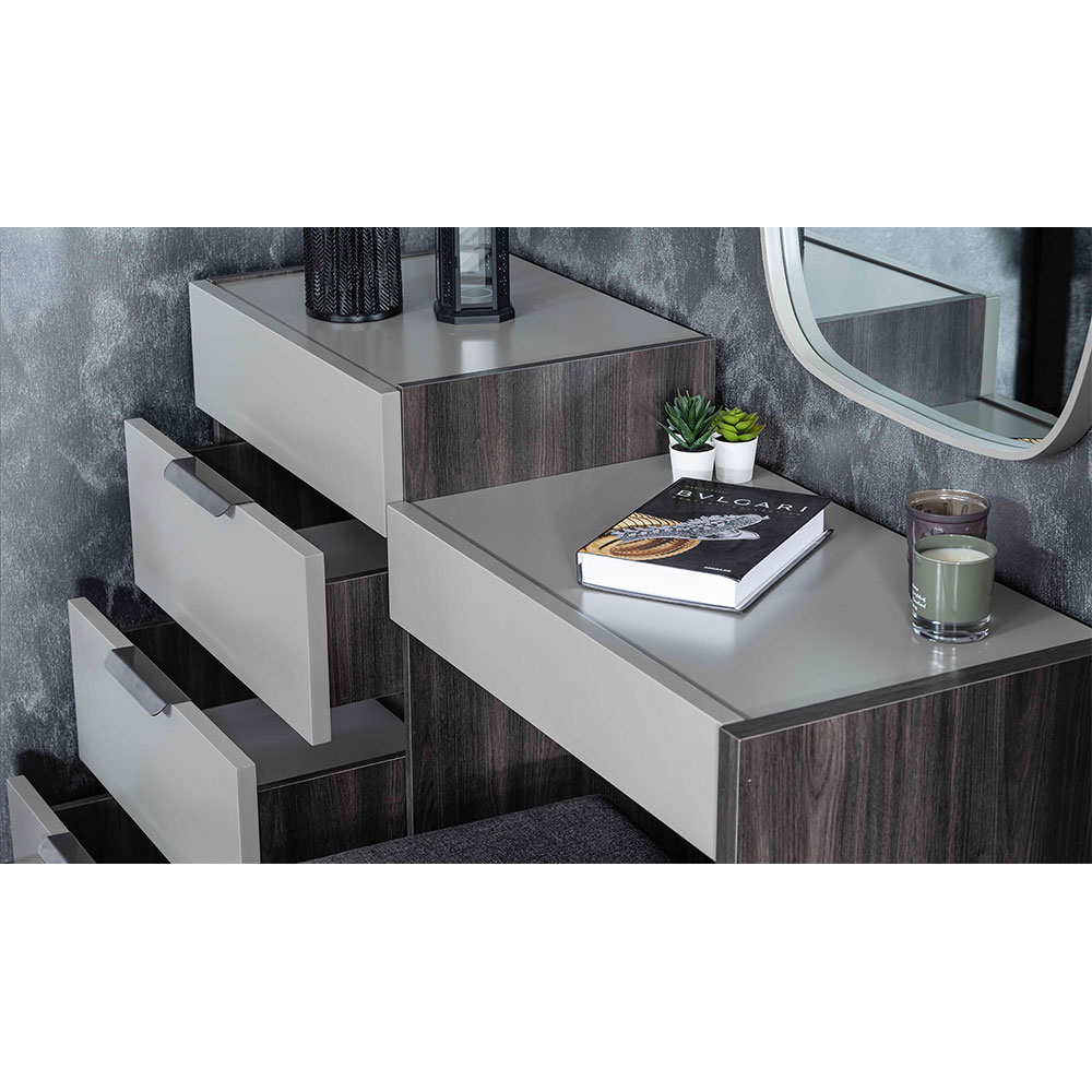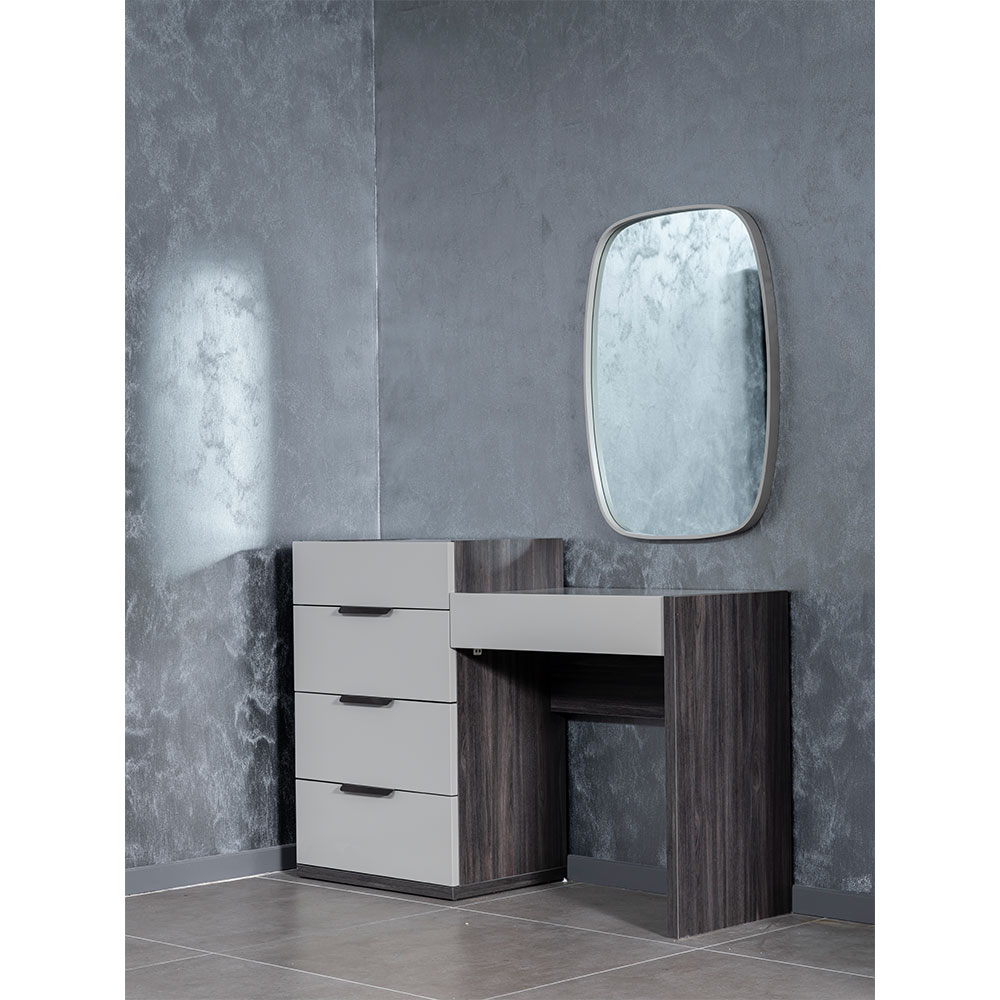 Completează-ți dormitorul cu această masă de machiaj elegantă și practică, realizată din MDF și PAL de calitate superioară. Designul modern și liniile curate oferă un plus de rafinament, iar oglinda inclusă transformă piesa într-un spațiu ideal pentru rutina zilnică de frumusețe.