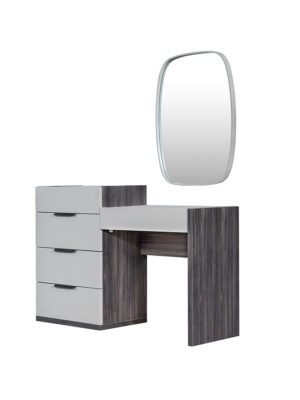 Masa este prevăzută cu sertare spațioase, echipate cu feronarie premium Hettich, ce garantează o deschidere lină și silențioasă. Oglinda inclusă completează perfect designul, oferind luminozitate și rafinament spațiului tău.