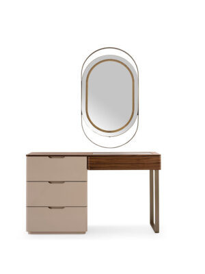 Ideală pentru dormitoarele contemporane, masa de machiaj Dolunay combină estetica modernă cu utilitatea, aducând un plus de stil și confort în fiecare zi.