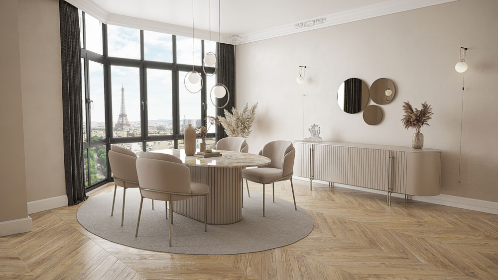 Perfectă pentru mese în familie sau întâlniri festive, masa combină armonios durabilitatea cu stilul modern, fiind alegerea ideală pentru interioare rafinate.
