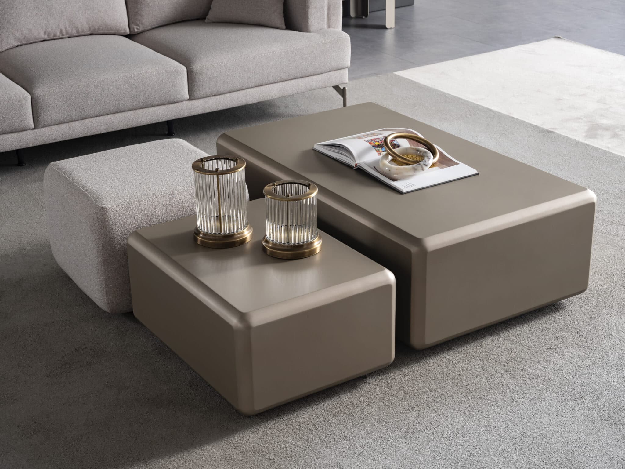 Transformă-ți livingul cu acest set elegant, compus din două măsuțe de cafea din MDF și un puf confortabil. Liniile simple și muchiile rotunjite oferă un aspect modern și rafinat, perfect pentru interioare contemporane. Cele două măsuțe pot fi utilizate împreună sau separat, adaptându-se ușor nevoilor zilnice, iar puful adaugă un plus de funcționalitate și confort.
