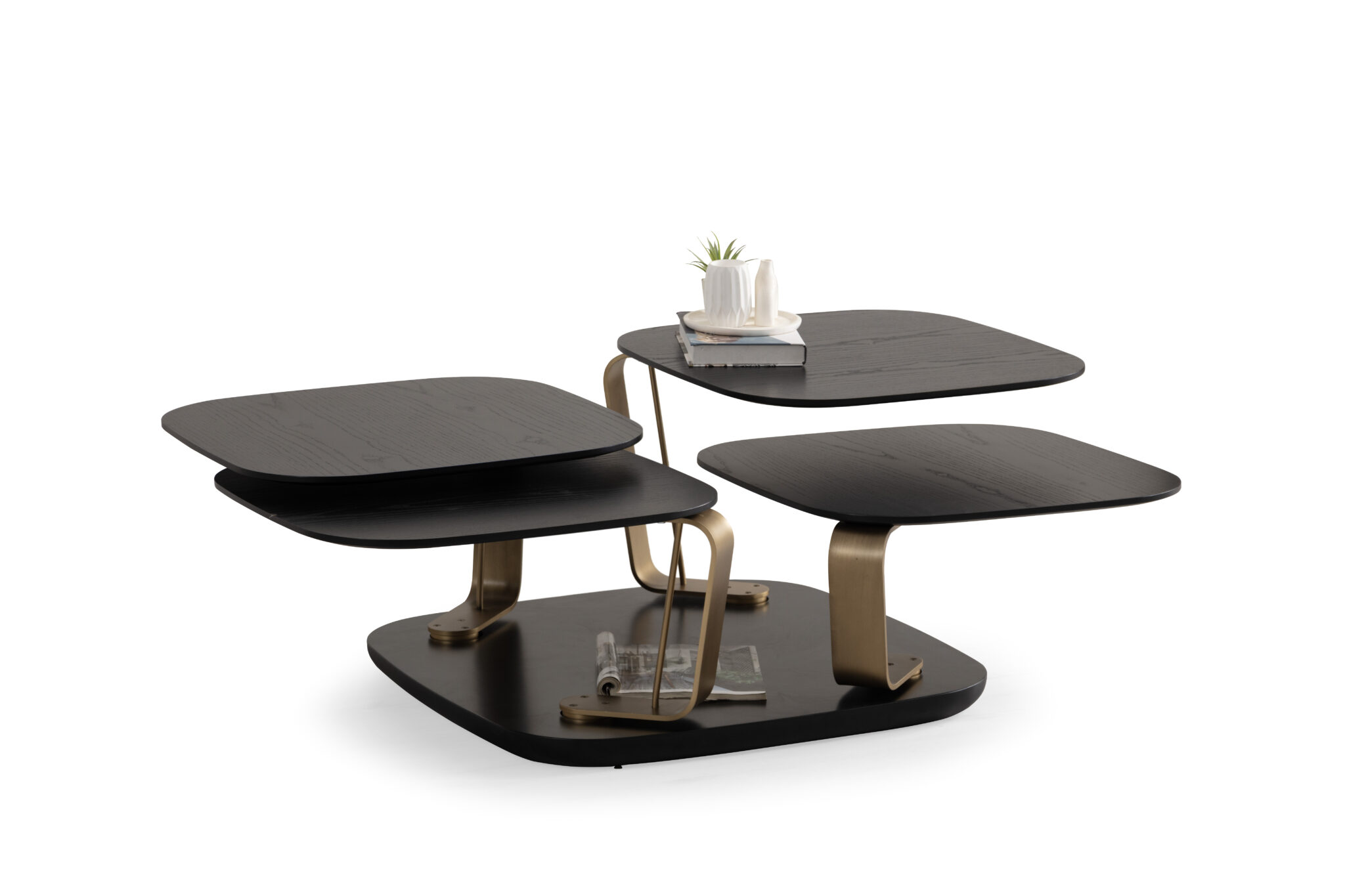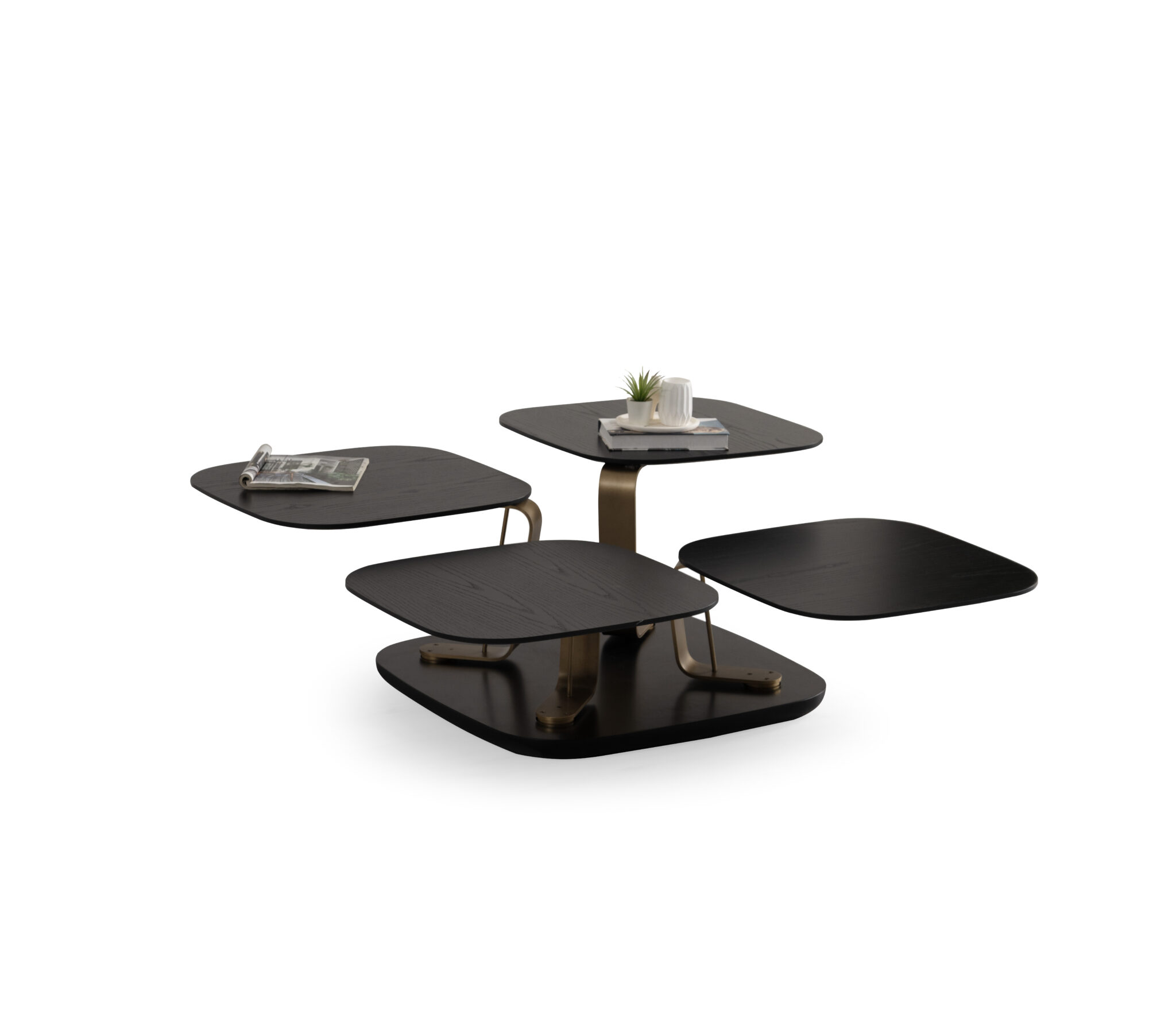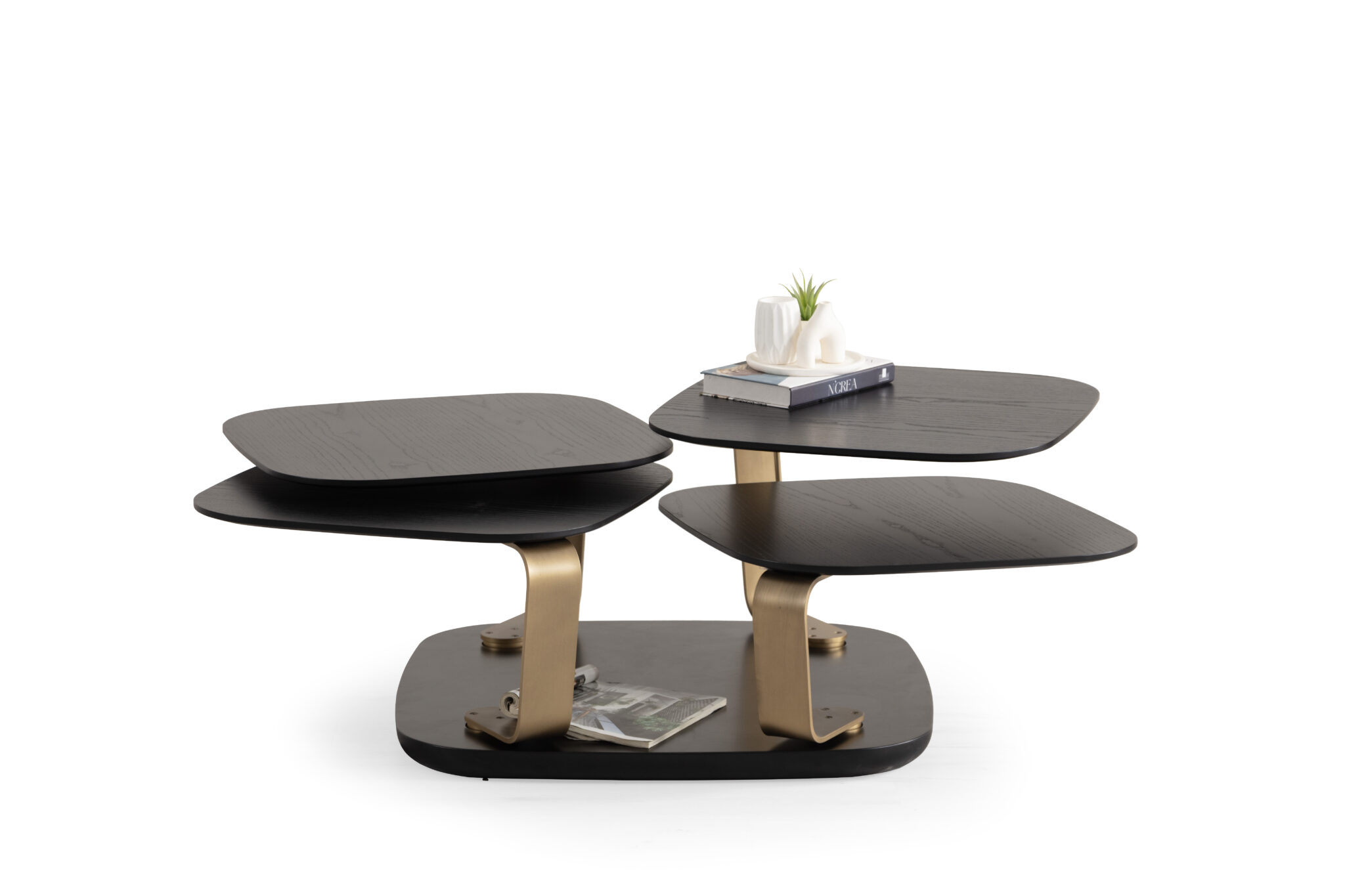 Măsuța de cafea Bentley este o piesă spectaculoasă de design contemporan, realizată dintr-o combinație elegantă de MDF și metal, ce oferă durabilitate și un aspect rafinat. Formată din 4 măsuțe rotative independente, Bentley aduce un plus de versatilitate și stil oricărui living modern.