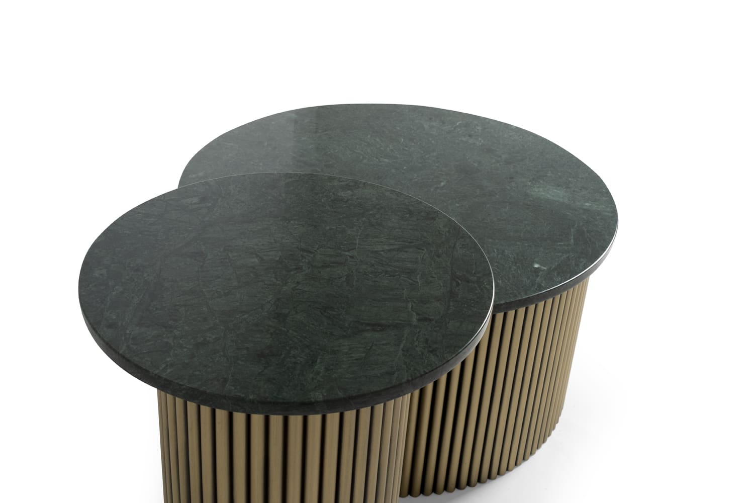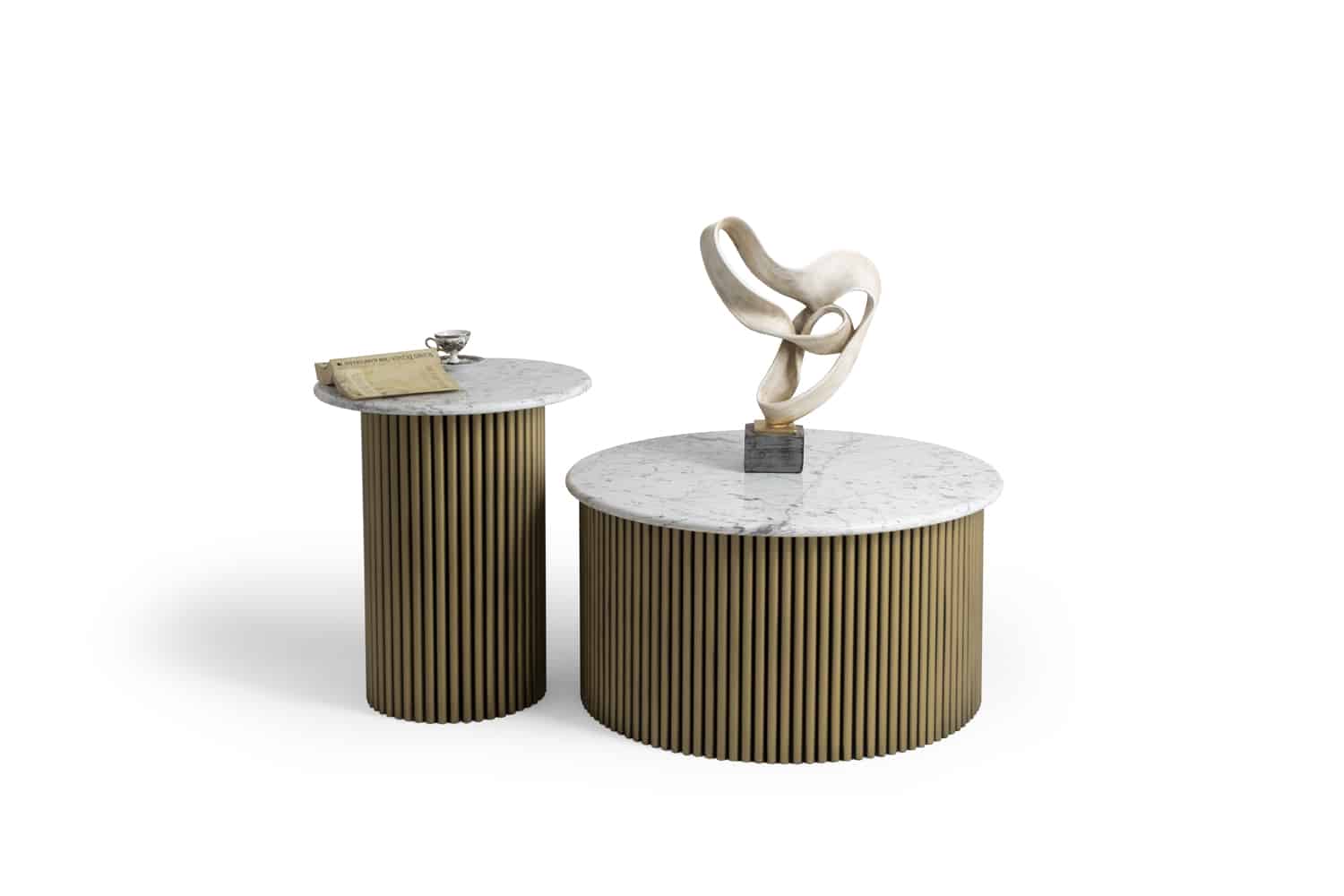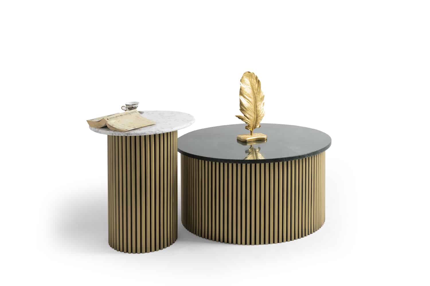 Designul lor sculptural, completat de proporțiile echilibrate, transformă aceste măsuțe într-un accent central de stil și prestigiu pentru orice living modern. Versatile și elegante, pot fi așezate împreună pentru un impact vizual spectaculos sau separat, ca piese de sine stătătoare.
