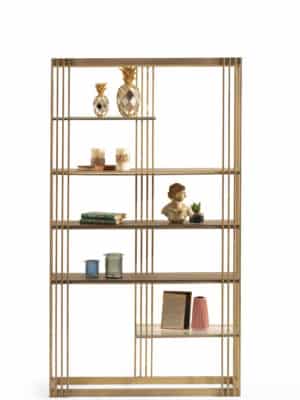 Biblioteca Caps travertin & negru aduce un mix perfect de stil, stabilitate și funcționalitate, fiind o alegere excelentă pentru interioare contemporane.