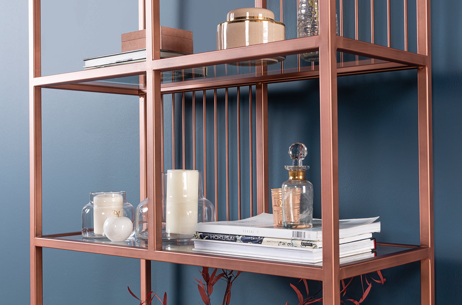 Rafinat și modern, acest raft decorativ aduce o notă glam oricărui spațiu. Realizat din metal finisat în auriu elegant și dotat cu rafturi din sticlă transparentă, piesa impresionează prin liniile sale curate și compartimentarea ingenioasă.