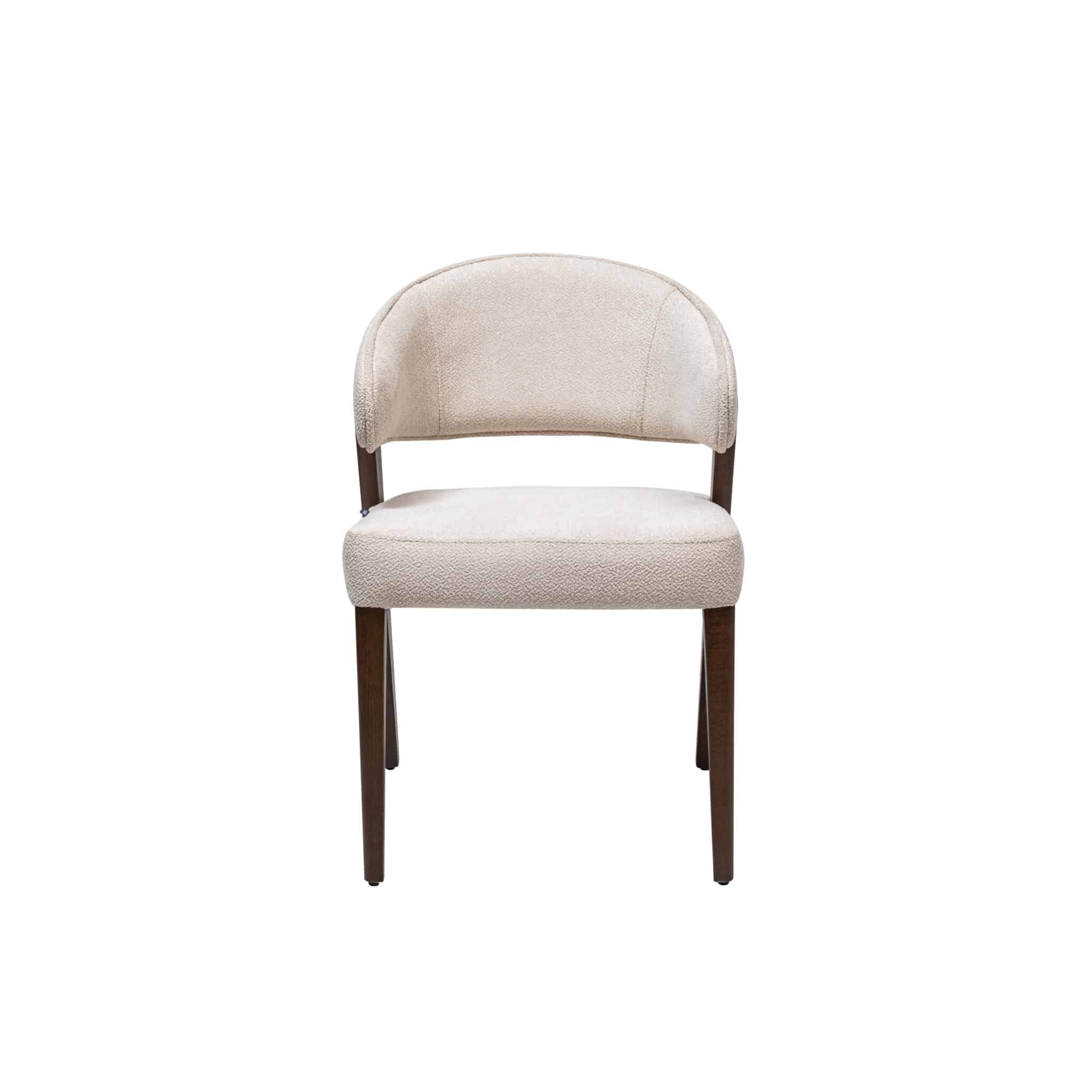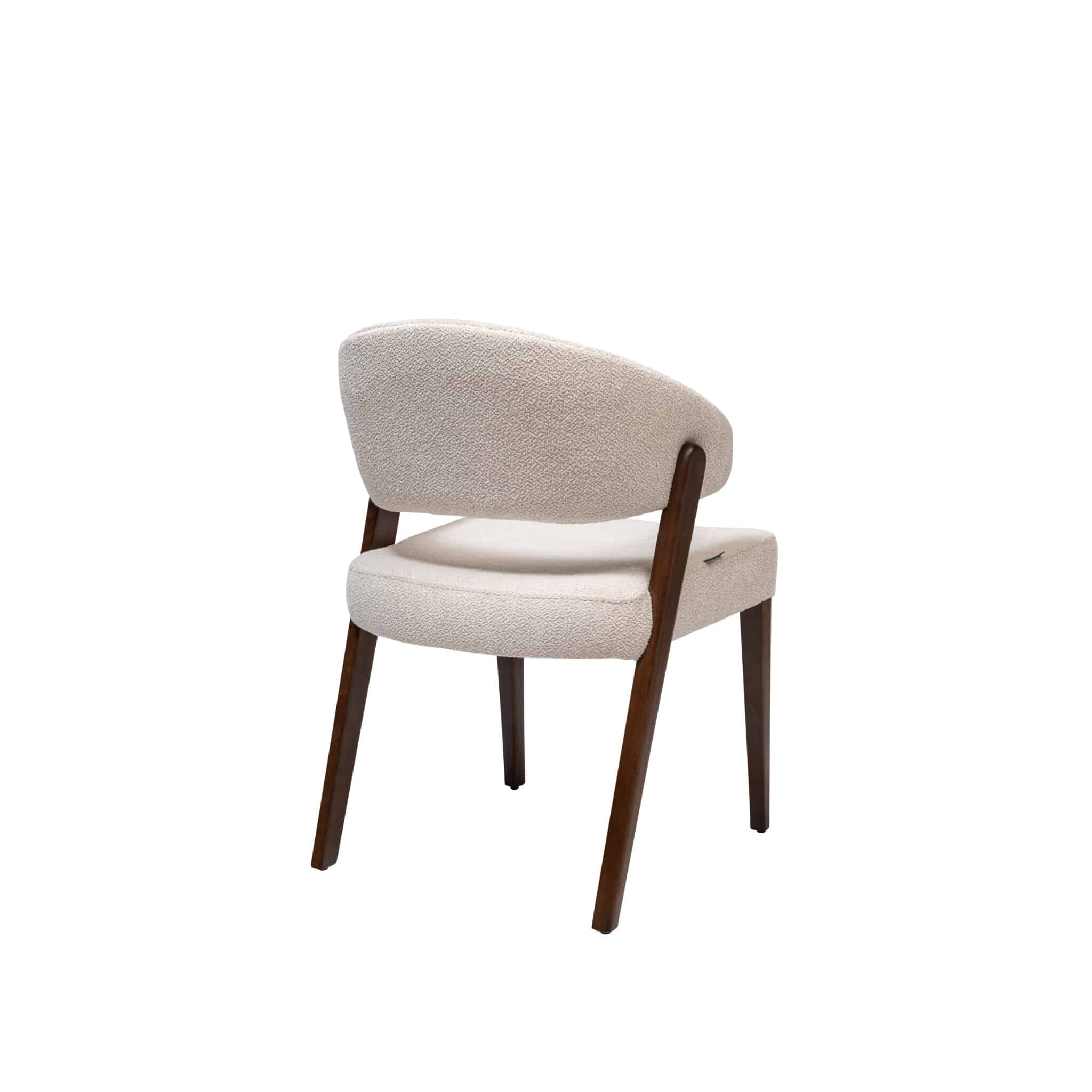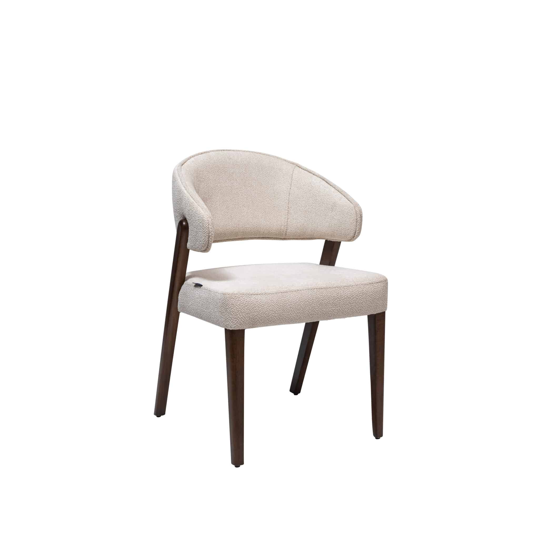 Structura scaunului este din lemn masiv, disponibil in 10 nuante, iar materialul textil se poate personaliza atat ca si textura cat si culoare.