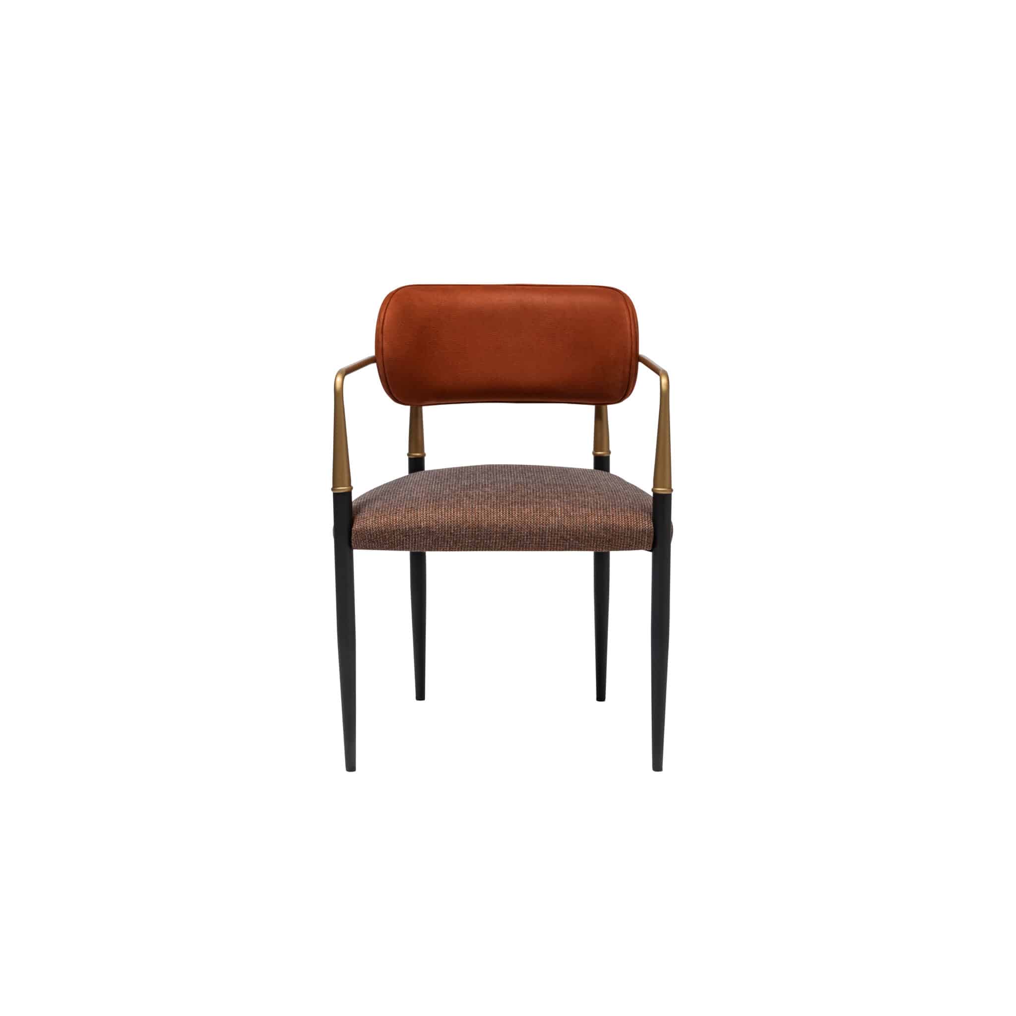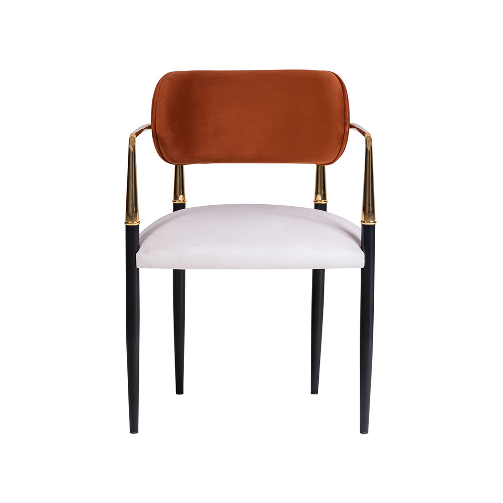 Umay Plus este expresia perfectă a luxului contemporan. Cu o structură metalică subțire și detalii aurii strălucitoare, acest scaun transformă orice încăpere într-un spațiu cu atitudine. Spătarul tapițat în catifea texturată și șezutul într-o nuanță contrastantă creează un efect vizual spectaculos și elegant.