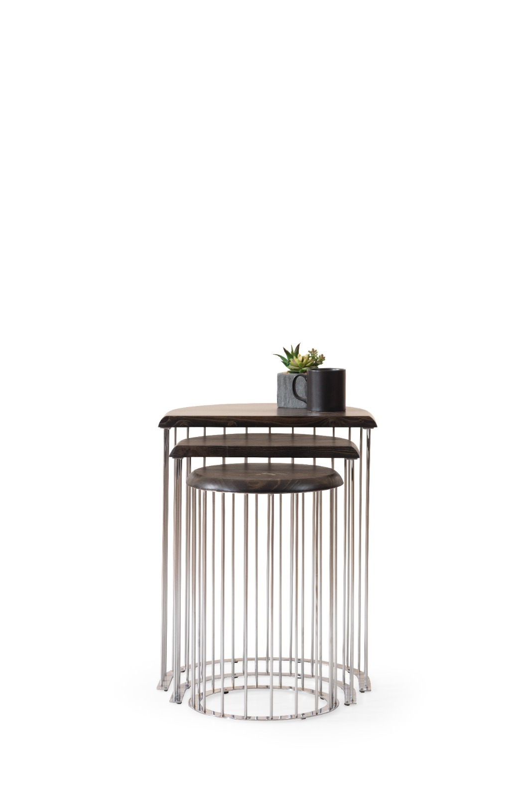 Elegant și modern, setul de măsuțe Nova aduce un aer sofisticat în orice living. Combinația dintre metalul cromat și blaturile din MDF cu finisaj cald oferă un contrast rafinat și versatilitate în decor. Ideal pentru a fi utilizate împreună sau separat, aceste măsuțe completează perfect un spațiu contemporan.